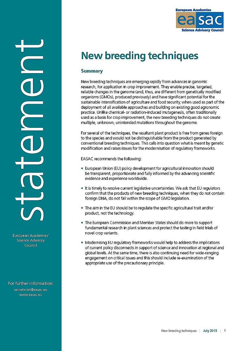 - It is timely to resolve current legislative uncertainties. We ask that EU regulators confirm that the products of New Breeding Techniques, when they do not contain foreign DNA, do not fall within the scope of GMO legislation.