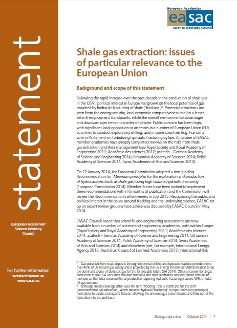 In this statement, EASAC addresses three specific concerns that are being put forward in the public debate about the exploitation of Europe's shale gas potential: